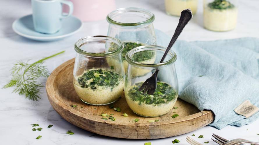 14. Kräuteromelett aus dem Glas: Eine clevere, gelingsichere und extrem schicke Art, Omelett für Gäste portionsgerecht zu servieren.