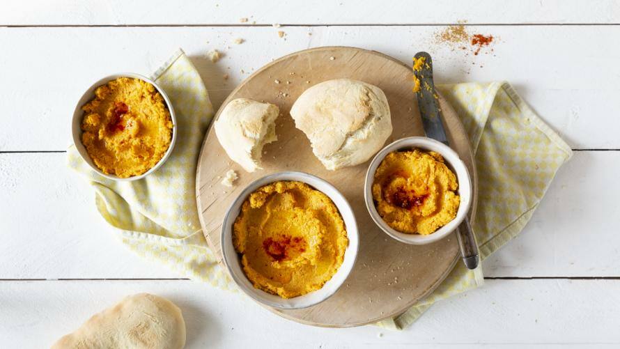 5. Möhren-Hummus: Eine aromatische, vegane Abwechslung, die richtig tolle Farbe auf den Tisch zaubert.
