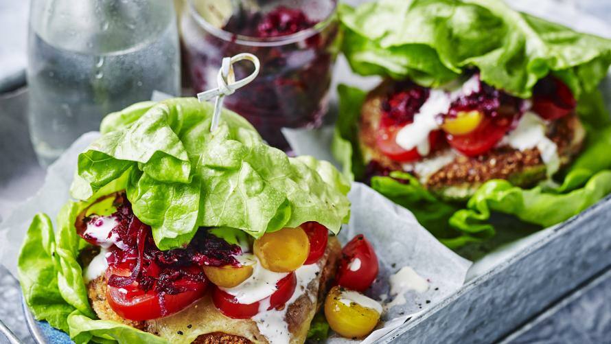 Wenn es aber doch der Lieferdienst sein soll, kannst du deinen Burger ohne die Brötchen bestellen. Einige Burger-Restaurants bieten diese Variante als „Low Carb Burger“ an. Das Fleischpattie wird dann mit den anderen Zutaten zwischen zwei großen Salatblättern serviert. Achtung bei Ketchup: hier steckt super viel Zucker drin, deshalb bestelle deinen Burger am besten ohne, dafür mit viel Mayo und zum Beispiel mit Senf.