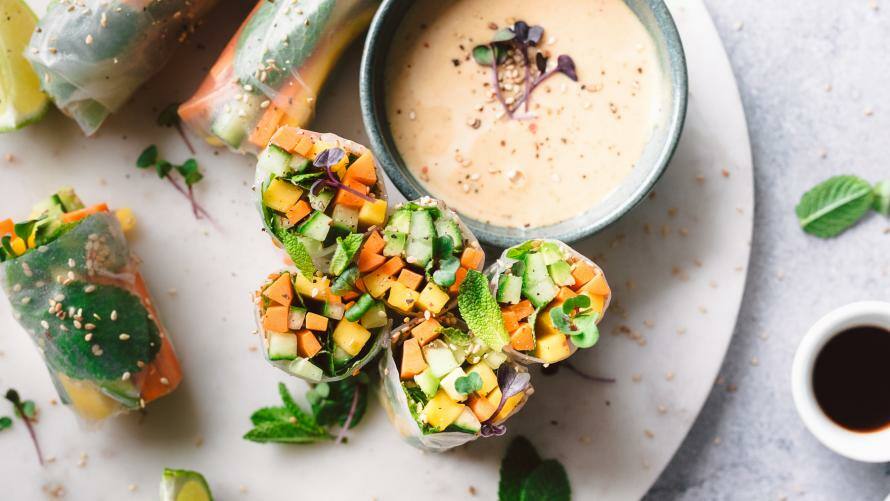 Statt Sushi kannst du beim Japaner Miso Suppe, Sashimi (roher Fisch wie Lachs oder Thunfisch), Algen- oder Wasserspinat sowie frische Sommerrollen bestellen.