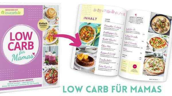 Unser Team von lowcarb.de weiß genau, wie schwer es sein kann, nach der Schwangerschaft oder wenn die Kinder schon etwas älter sind, wieder in Form zu kommen. Deshalb haben wir das Kochbuch „LOW CARB für Mamas" entwickelt, um dir zu helfen! Das Buch enthält über 100 speziell auf die Bedürfnisse von Müttern abgestimmte Rezepte, die dir helfen werden, eine bewusste Ernährung in deinen Familienalltag zu integrieren.